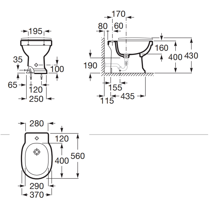 Биде ROCA CARMEN 56*37см, напольный A3570A4000
