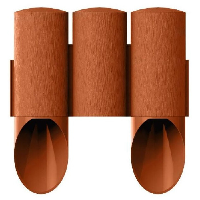 Газонне огородження 3 елементи MAXI. Ідеально відокремлює газон або стежку від городу або квіткових клумб. Конструкція нижньої частини попереджає її руйнування під час вбивання в землю. Текстура поверхні - "під дерево". Не вимагає технічного обслуговування. Стійка до ультрафіолетового випромінювання - стійкий колір, морозостійка. Зручний спосіб з'єднання елементів дозволяє формувати огорожу довільним чином. Кольори: коричневий, зелений, теракот. Довжина комплекту 2,1 метр.