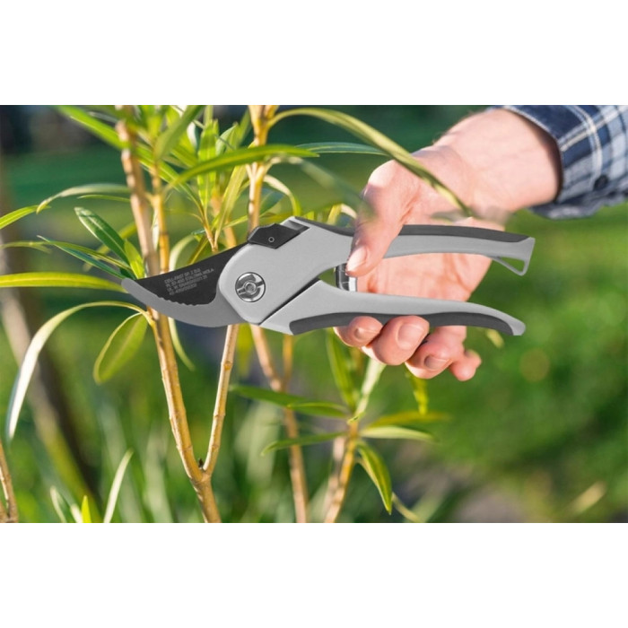 Одноручный секатор-ножницы Cellfast BASIC, предназначенный для резки свежей древесины. Ручки покрыты поверхностью SAFETOUCH™, что обеспечивает надежный захват и удобство использования. Верхнее лезвие с антипригарным покрытием гарантирует безопасную стрижку растений. Изготовлен из алюминия и высокоуглеродистой стали, благодаря чему секатор исключительно острый. Максимальный диаметр резки 16 мм, имеет предохранительный замок