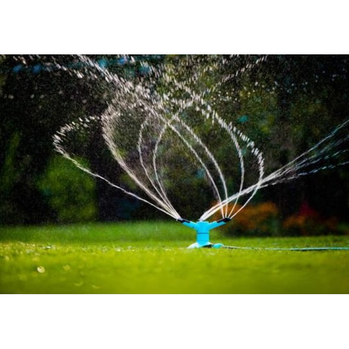 Зрошувач Cellfast ERGO трьох променевий, 12 форсунок, до 200 м2 53-460. Ергономічний обертовий зрошувач ERGO на основі трикутника, три крила, 12 форсунок, поверхня зрошення до 200 м2, рівномірне зрошення поверхні завдяки точному розміщенню форсунок. Ретельний опис полегшує точний вибір швидкості обертання і поверхні зрошення. Складні штифти надійно фіксують зрошувач під час його роботи.
