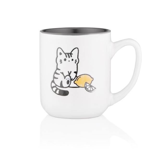 Чашка ARDESTO Cat, 380мл, кераміка, біло-сірий