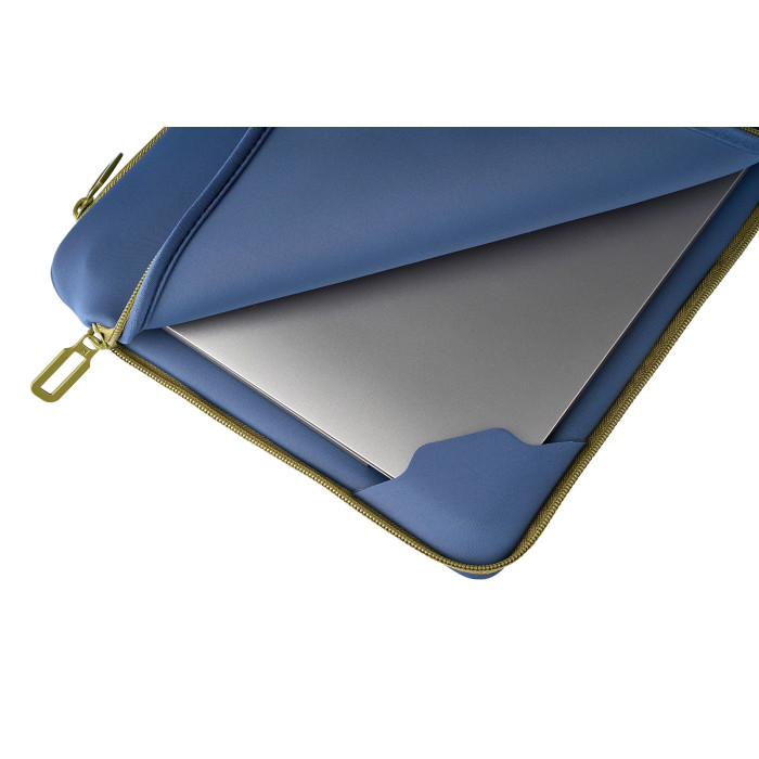 Чохол Tucano Doppio 13"/14" поєднує екологічний підхід і практичність. Два відділення — для ноутбука або планшета та аксесуарів — забезпечують порядок і зручність у щоденному використанні. Протиковзка система фіксує пристрій усередині, а кутові клапани зміцнюють захист під час транспортування. Зовнішній шар із неопрену товщиною 4 мм ефективно амортизує удари. Модель створена з матеріалу, частково виготовленого з переробленого пластику.