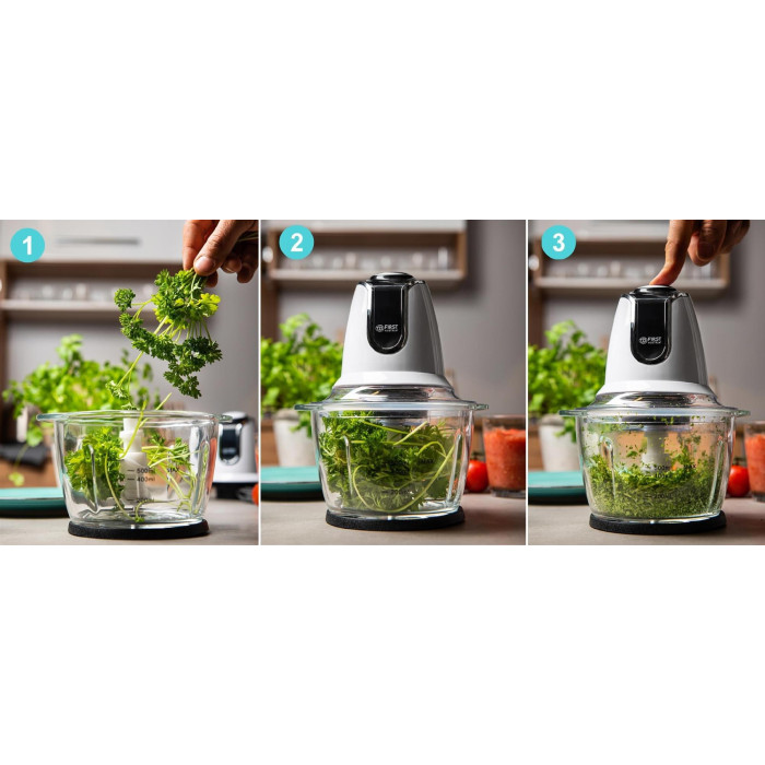 На закінчення, подрібнювач First 5114-8 - це оптимальний вибір для тих, хто цінує якість та функціональність. Він ідеально підійде як для повсякденного використання, так і для приготування складних страв, забезпечуючи легкість та задоволення від процесу приготування. З цим пристроєм ваша кухня стане місцем, де кулінарні ідеї втілюються в життя швидко та просто.