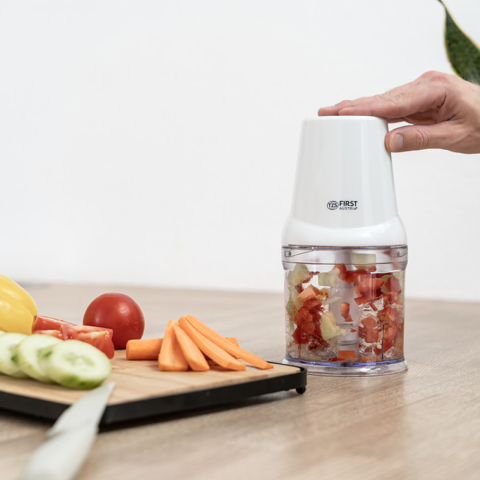 Подрібнювач First FA-5114-WI - це чудове рішення для тих, хто шукає надійний та ефективний інструмент для кухні. З об'ємом чаші 0,5 літра цей подрібнювач створений для швидкого і зручного приготування різних страв. Незалежно від того, чи ви готуєте соуси, супи або просто подрібнюєте овочі, цей подрібнювач стане незамінним помічником.