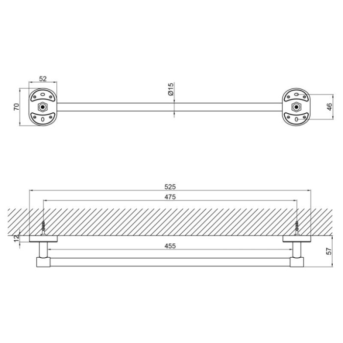 Полотенцедержатель Lidz (CRM) 114.01.00 изготовлен из качественного металла с глянцевой хромированной поверхностью. Длина изделия 525 мм, что позволит повесить на просушку сразу два небольших или одно банное полотенце. Благодаря лаконичной форме держатель не займет много места и станет стильным дополнением ванной комнаты.