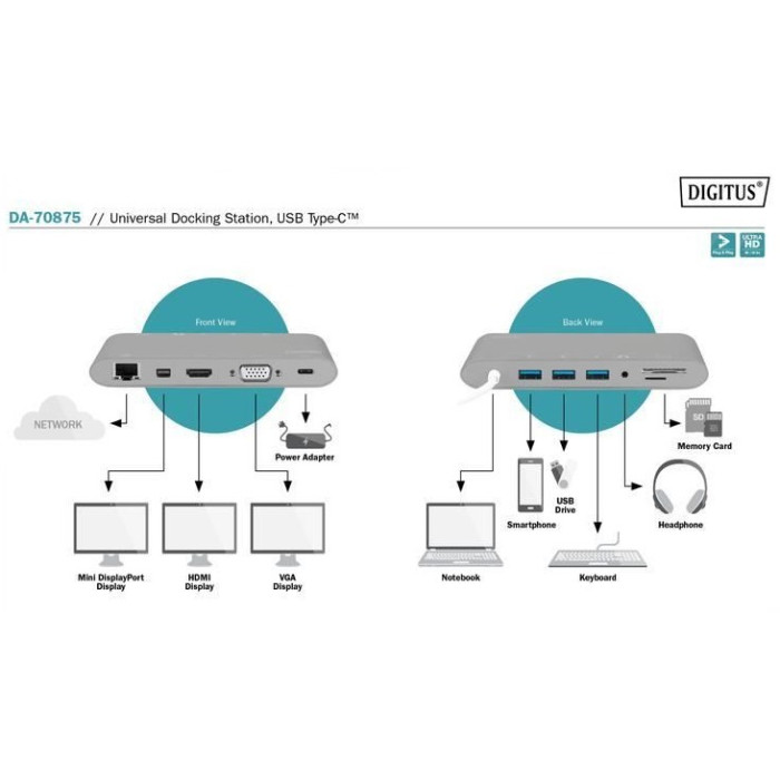 Хаб DIGITUS USB-C > HDMI/VGA/miniDisplayPort/3xUSB-A/USB-C/SD/MicroSD/RJ54/Audio (DA-70875)