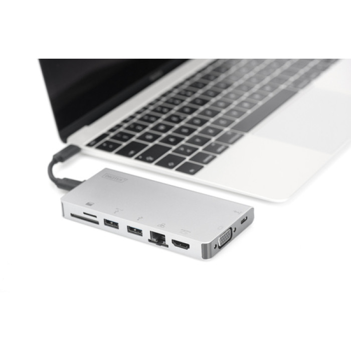 Digitus Хаб USB-C > HDMI/VGA/2xUSB-A/USB-C/SD/MicroSD/RJ54