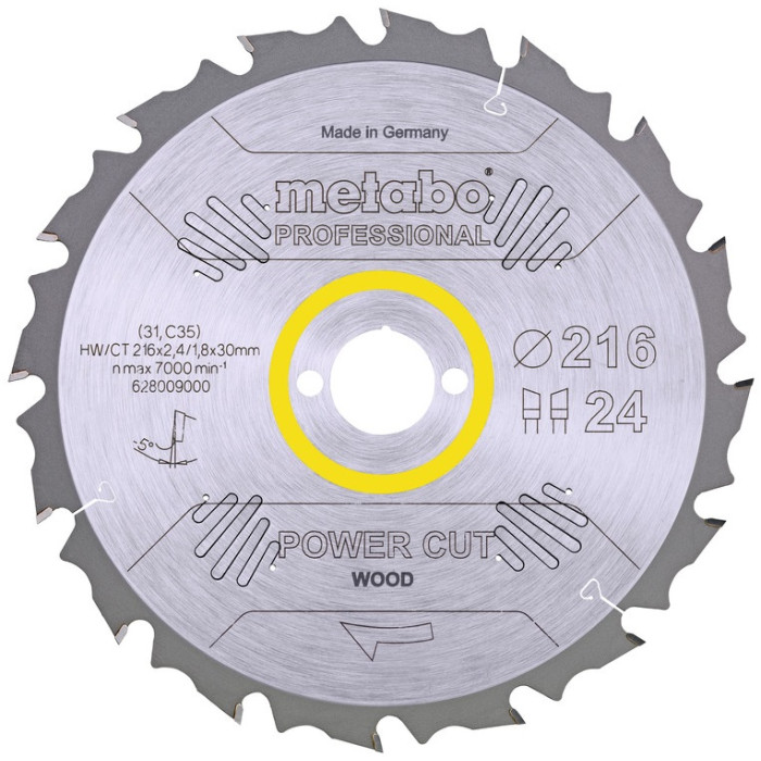 Диск пильний Metabo Power Cut Wood - Professional, 216х30мм, 24 зубців