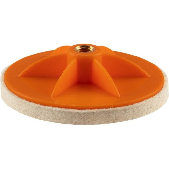 Фетр полірувальний NEO (арт 08-961) діаметром 125 мм і товщиною губки 10 мм, кріпиться на різьбі М14. Виготовлений з натуральної вовни. Призначений для кутових шліфувальних машин. Засіб призначений для надання блиску нефарбованим хромованим, металевим, скляним і твердим пластиковим поверхням. Рекомендується використовувати при максимальній частоті обертання 5000 об/хв.