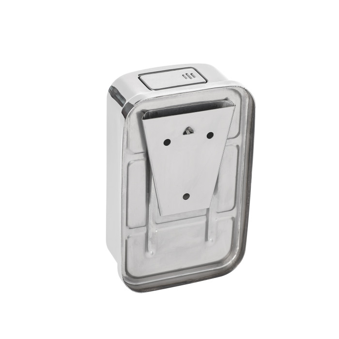 Дозатор для рідкого мила KRM Rizze - ACC405-5 від Kroner на 500 мл виготовлений із металу з хромованою поверхнею. Подання мила відбувається в разі натискання на кнопку. Диспенсер кріпиться на стіну в будь-якому зручному місці шурупами, які входять до комплекту.
