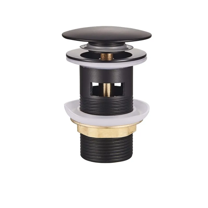 Донний клапан для умивальника з переливом Champion POP-UP-01 Black 1 1/4'' (кнопка) (CH0365)