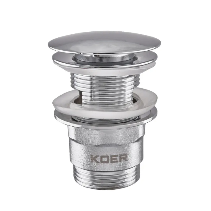 Донний клапан для умивальника з переливом Koer PW-03-01 1 1/4'' (кнопка) (Колір хром) (KR3394)
