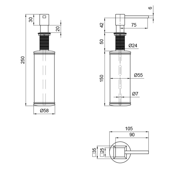 Дозатор для моющего средства Lidz LK117 квадратный Brushed Steel (LDLK117BRU46399)