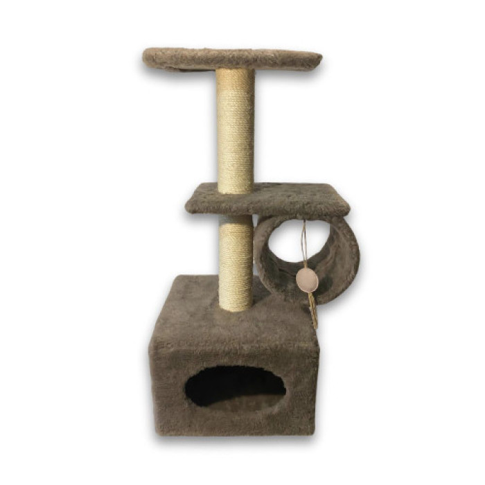 Дряпка з будиночком, майданчиками на стовпчиках, барабаном, іграшкою дуже сподобається енергійним улюбленцям, і кошенятам, і дорослим котикам. Конструкція компактна, легко пересувається з місця на місце, органічно вписується в інтер'єр, а розмаїття кольорів дає можливість вибрати модель на свій смак.