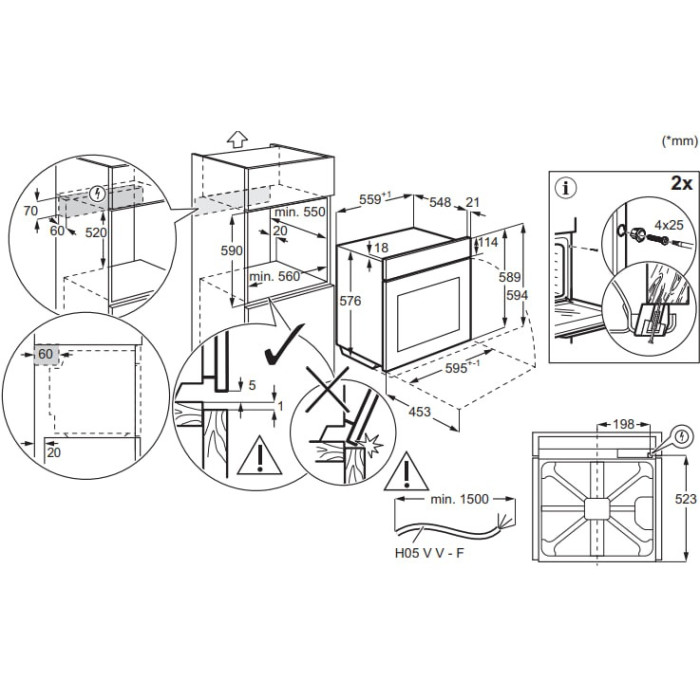 Размеры для встраивания (ВхШхГ)