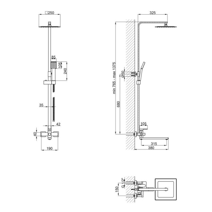 Ручной душ: прямоугольная. Верхний душ: квадратная