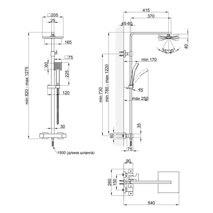 Высота душевой стойки, мм