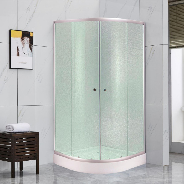 Душова кабіна Kroner KRP Harz - C.F.F. 90x90 см - це стильне та функціональне рішення для вашої ванної кімнати. Душова кабіна має компактні розміри 90x90 см та форму чверті кола. Ця форма ідеально підходить для ванних кімнат з обмеженим простором. Піддон є низьким і має висоту всього 145 мм. Виготовлений із високоякісного акрилу, він є міцним та довговічним. Глибина піддону становить 45 мм, забезпечуючи зручність при прийомі душу. Конструкція дверей - розсувна, а матеріал полотна дверей - скло з рифленою текстурою. Це не тільки надає душовій кабіні елегантний вигляд, але і забезпечує вашу приватність під час душу. До комплекту душового боксу входять піддон, сифон, ручки, ролики, профіль, ніжки та комплект кріпильних деталей. Це робить його готовим до встановлення та використання.