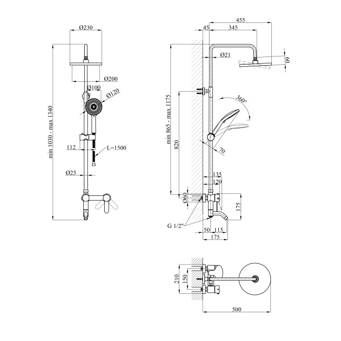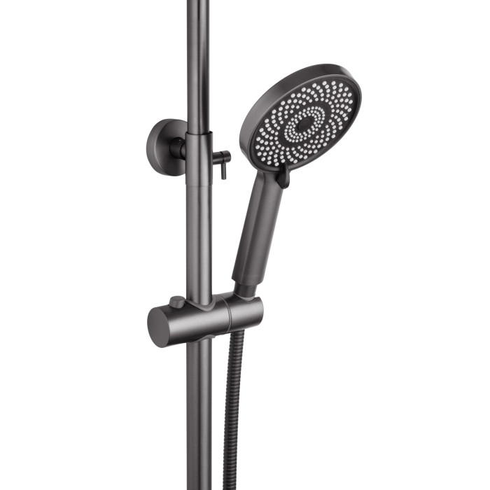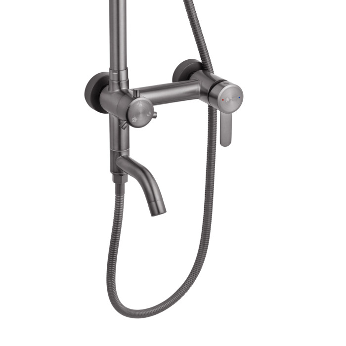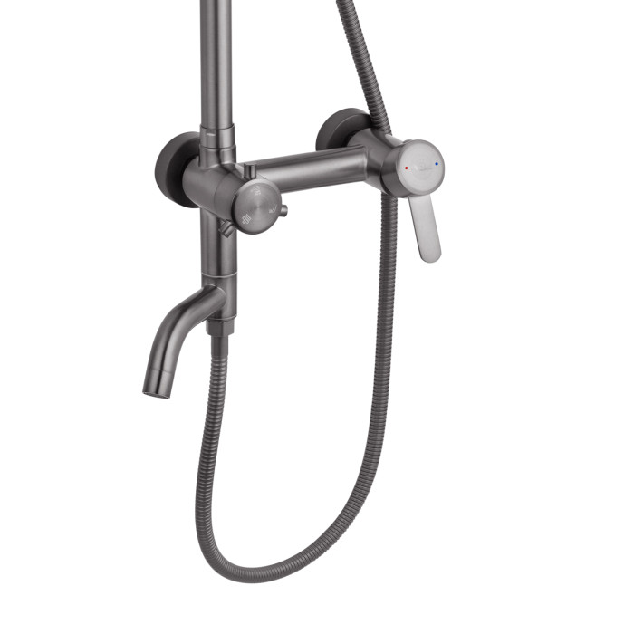 Система оснащена верхнім душем і ручною лійкою з 3 режимами подачі води, що дозволяє вибрати оптимальний тип струменя для комфортних водних процедур. Регульована по висоті штанга забезпечує зручність використання для всіх членів сім'ї.