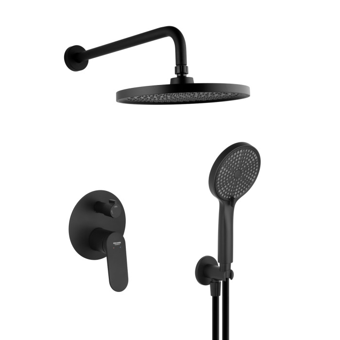 Душова система вбудована Kroner Element 211335В-3801 (чорний) — стильне і функціональне рішення для сучасної ванної кімнати. Глибокий чорний колір надає інтер'єру стриману елегантність і підкреслює актуальний дизайн, гармонійно поєднуючись з іншими елементами сантехніки. Матова поверхня практична в догляді, стійка до відбитків і легко очищається, зберігаючи акуратний зовнішній вигляд.