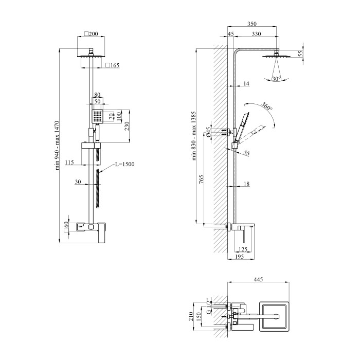 Ручний душ: 1. Верхній душ: 1.