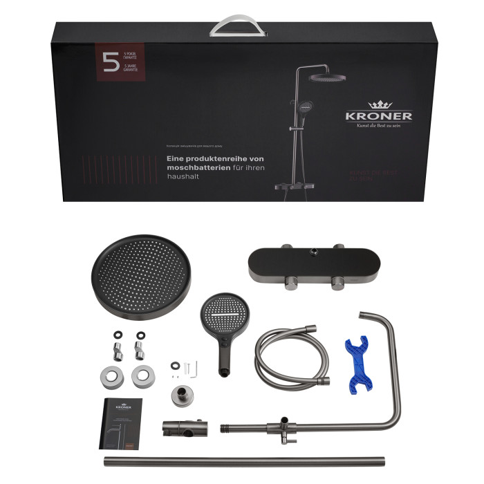 Душова система Kroner KRP Makon - GRP0637 – це сучасне рішення для тих, хто цінує комфорт, якість та стиль у ванній кімнаті. Вона поєднує у собі продуману ергономіку, функціональність та сучасний дизайн у графітовому кольорі, що виглядає ефектно й гармонійно вписується у будь-який інтер’єр.