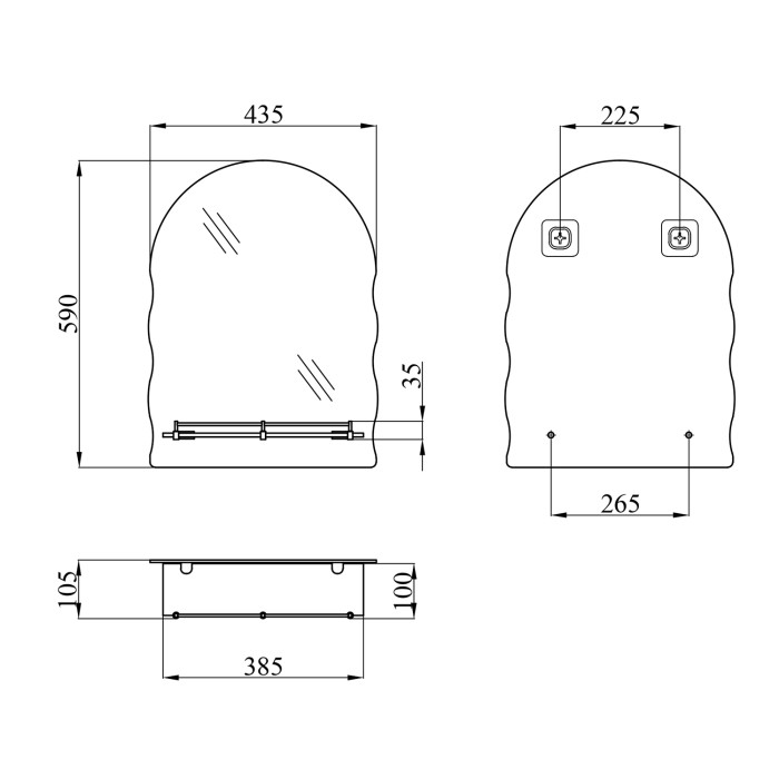 Дзеркало KRM Belantis - ACS702 від Kroner з полицею 432х575х100 кріпиться до стіни за допомогою шурупів, які входять до комплекту. Його можна помістити над умивальником у приміщенні з будь-яким інтер'єром завдяки лаконічному дизайну. Дзеркало виготовлене з дугуватим верхом і фігурними боками. Комплектується разом із поличкою 40х100 мм із прозорого скла з хромованим бортиком, що запобігає випадковому падінню гігієнічних засобів. Полиця кріпиться до дзеркала за допомогою металевих тримачів.