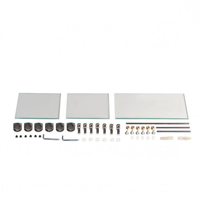 Дзеркало KRM Belantis - ACS705 від Kroner має 3 полиці 480х675х100, що кріпляться до стіни за допомогою шурупів, які входять до комплекту. Дзеркало комплектується трьома полицями з прозорого скла з хромованими бортиками, що запобігає випадковому падінню гігієнічних засобів. Габарити основної полиці 200х100 мм, габарити двох додаткових - 120х100 мм. Полиці кріпляться до дзеркала за допомогою металевих тримачів.