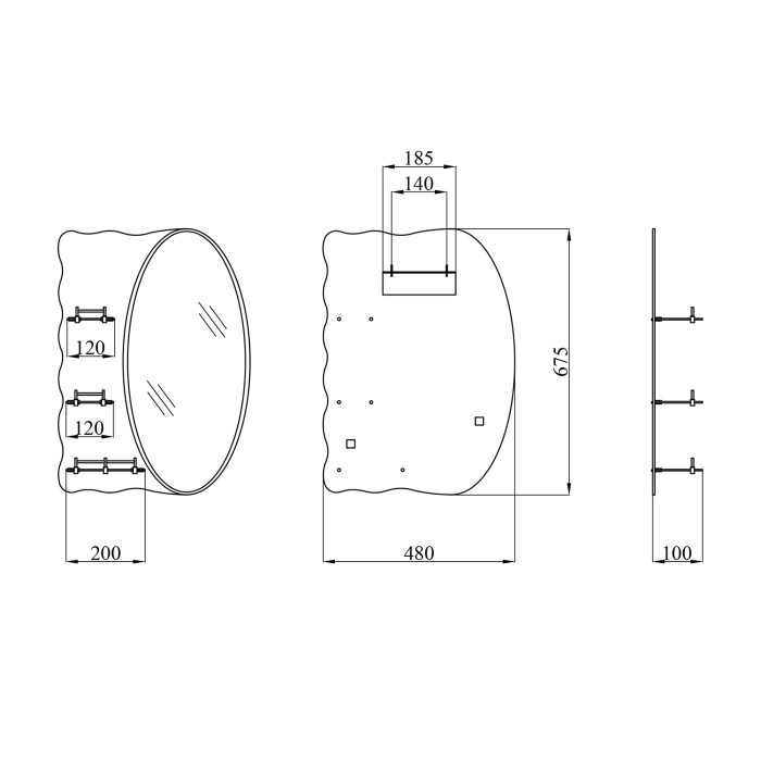 Дзеркало, кріплення, полиці.