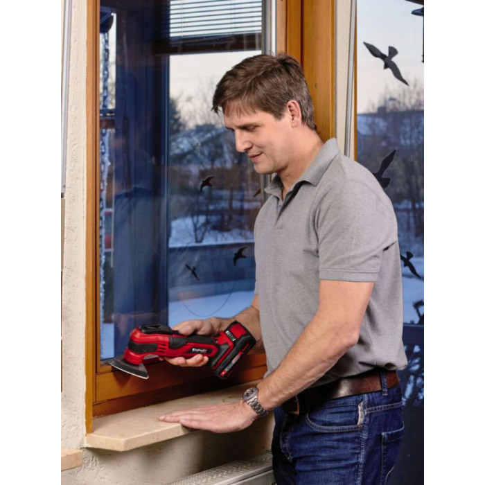 Багатофункціональний акумуляторний інструмент Einhell VARRITO серії Expert plus РЕНОВАТОР подолає будь-які завдання: роботою по дереву, металу, пластику, гіпсокартону або плитці. Багатофункціональний інструмент Einhell VARRITO виконає безліч дрібних робіт, для виконання яких раніше потрібно кілька ручних інструментів, він легко впорається з пилянням, шліфуванням або різкою, причому в важкодоступних місцях і там, де потрібне ідеальне оздоблення поверхні. Швидка магнітна фіксація інструменту допомагає змінити насадки без додаткових інструментів.