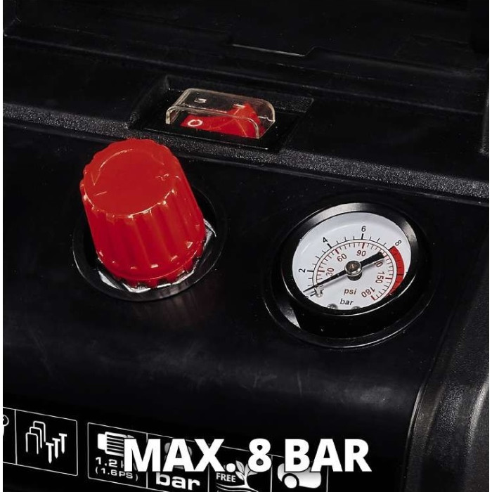 Einhell Компресор повітряний безмасляний TC-AC 190/6/8 OF, 1200Вт, 6л, 190л/хв, 8бар, 8.9кг