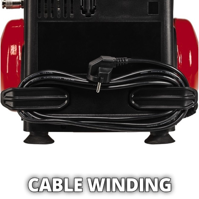 Завдяки цьому мобільному і компактному компресору Einhell TC-AC 190/6/8 OF Set ви можете виконувати безліч простих робіт, що вимагають стисненого повітря, в домашніх умовах, в саду і гаражі або в кемпінгу. Завдяки наявності ресивера зі стисненим повітрям 6 л невеликі роботи можуть бути виконані без нового запуску двигуна компресора.