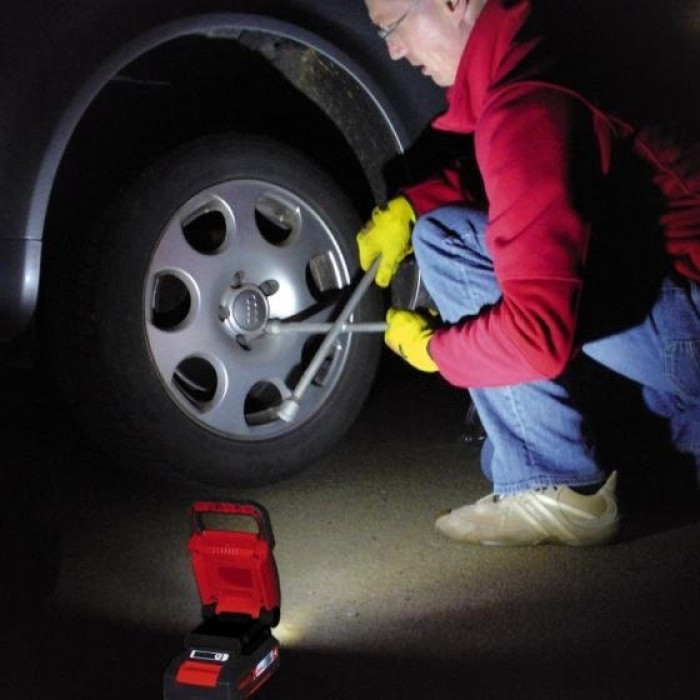 Акумуляторний ліхтар Einhell TE-CL 18 Li - Solo забезпечує яскраве освітлення при роботі в темряві або в місцях з поганим освітленням. Ліхтар є пристроєм сімейства Einhell Power X-Change. Акумулятор і зарядний пристрій Power X-Change можуть використовуватися для всіх пристроїв сімейства Power X-Change. Три потужних світлодіоди забезпечують яскраве світло. Ліхтар має дуже низьке енергоспоживання і продовжує світити протягом надзвичайно тривалого часу (до 32 годин). Просте регулювання кута нахилу до 135° з широким або вузьким налаштуванням потоку світла дозволяє користувачеві налаштувати ліхтар для забезпечення оптимального освітлення. Міцний корпус з ручкою для перенесення і м`які накладки на ручці забезпечують зручну і комфортну роботу.