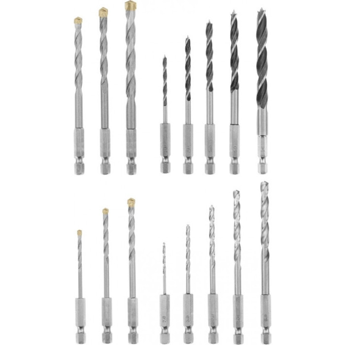 Висока якість бренду KWB, що належить Einhell. 5 свердел по металу (2-6 мм) з кованої сталі HSS з кутом 135°, 5 свердел по дереву (3-8 мм) з кованої вуглецевої сталі, 6 свердел для бетону (3-8 мм) з кованої вуглецевої ст... Читать далее...
