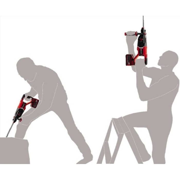 Акумуляторний безщітковий перфоратор лінійки Power X-Change system Einhell TP-HD 18/26 D Li BL - Solo серії Professional - справжній універсал. Він поєднує в собі чотири функції в одному інструменті: свердління, ударне свердління та довбання з і без зупинки обертання. Потрібний режим можна встановити за допомогою головного позиційного перемикача. Серцем пристрою є потужний безщітковий двигун Einhell PurePOWER. Цей безщітковий двигун забезпечує більшу потужність і довший час роботи, ніж звичайні двигуни з вугільними щітками. Акумуляторний перфоратор є частиною сімейства Power X-Change, що дозволяє гнучко поєднувати акумулятори, інструменти та зарядні пристрої.