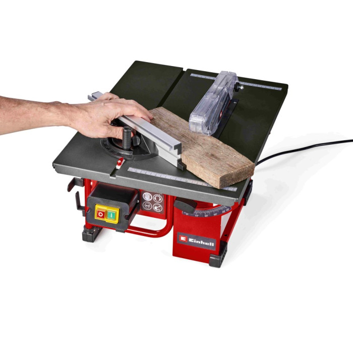 Настільна пила Einhell TC-TS 8 I — компактний і потужний інструмент для роботи з деревом та деревоволокнистими матеріалами. Асинхронний двигун забезпечує плавну роботу, а сталевий робочий стіл і трубчаста рама — стійкість. Пильне полотно нахиляється вліво до 45°, паралельний і кутовий упори дозволяють виконувати точні косі пропили. Отвір для стружки та тримач кабелю підтримують робочу зону в чистоті, а твердосплавне полотно гарантує якісне різання. Для безпеки роботи передбачено штовхач заготовки.