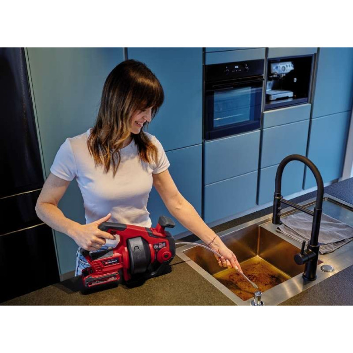 Einhell Пристрій для прочищення труб TE-DA 18/760 Li - Solo акум., PXC, 18В, 560 об/хв, трос 7.6 м, d7мм, 16-55 мм
