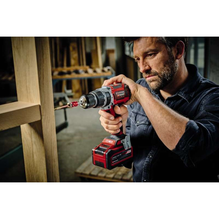 Аккумуляторный ударный шуруповерт Einhell TP-CD 18/60 Li-i BL - Solo имеет бесщеточный двигатель для лучшей производительности и более длительной работы по сравнению с обычными двигателями с угольными щетками из-за отсутствия какого-либо износа из-за механического истирания.