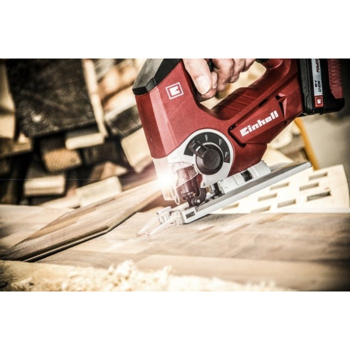 Лобзик Einhell TC-JS 18 Li-Solo Power X-Change System предназначен для криволинейных и прямолинейных пропилов, коротких пропилов и резки таких материалов, как дерево, железо, цветной металл и пластик при использовании соответствующего пильного полотна.