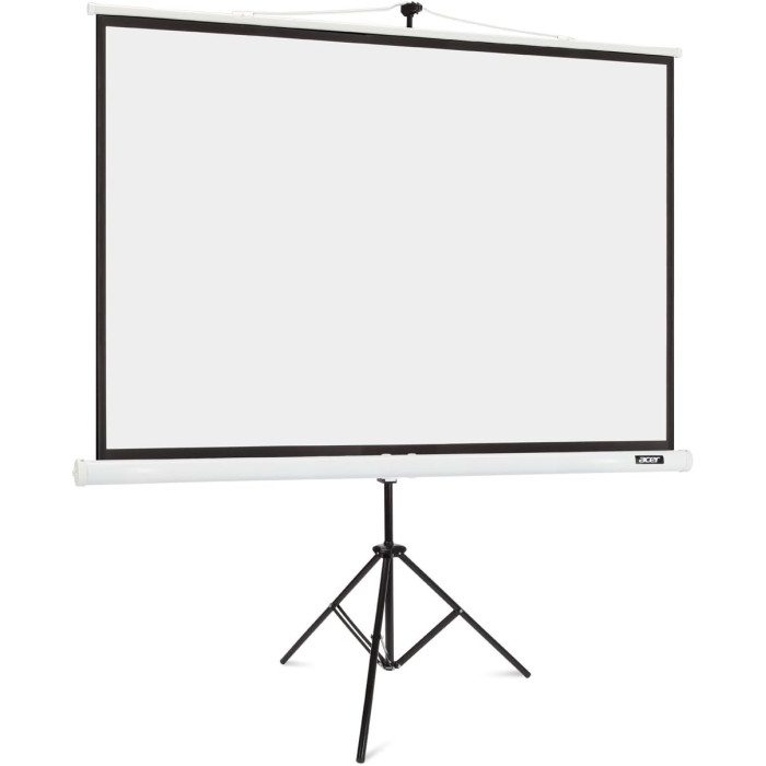 Екран на тринозі Acer MC.JBG11.00F, також відомий як Acer T87-S01MW, - це мобільний проєкційний екран з розмірами 174 x 130 см. Він має співвідношення сторін 4:3 і зручний для установки та перенесення. Цей екран легко складається в тубус, що робить його зручним для транспортування та зберігання.