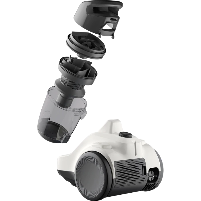 Наш пилосос без мішка створений для зниженого споживання енергії та оснащений ефективною системою фільтрації пилу. Відмінна ефективність, що допоможе підтримувати чистоту в домі, кожного разу.