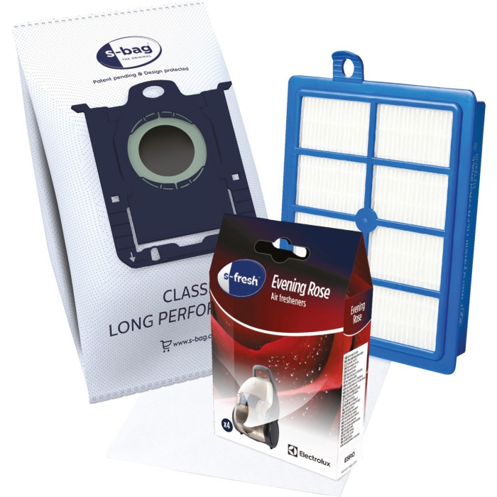Стартовый набор Electrolux SRK1S для пылесосов с мешками S-bag включает в себя 4 мешка S-bag Long Performance, фильтр Allergy Plus для удержания аллергенов, 4 освежителя воздуха ZE210 и моторный фильтр EF51. Обеспечивает эффективную очистку, чистый воздух и длительный срок службы вашего пылесоса.