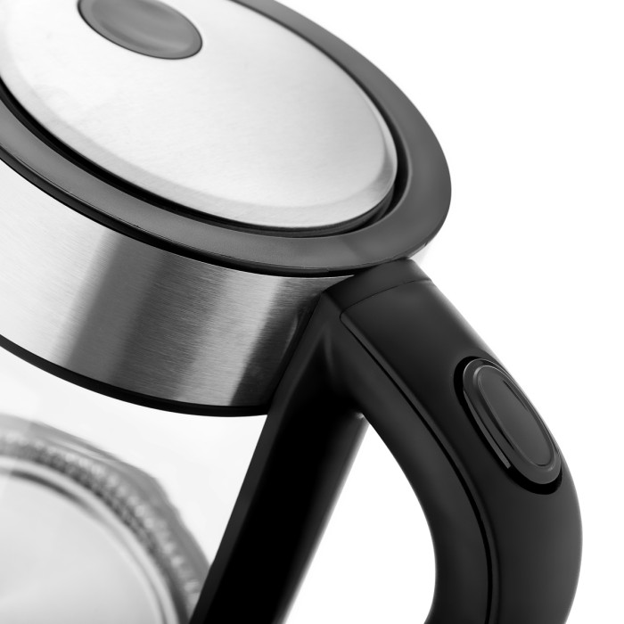 Чайник має скляну циліндричну колбу зі шкалою об'єму 1,7 літра, що наповнюється водою. Конструктивною перевагою моделі є функціональна підставка, де розташовані кнопки керування.