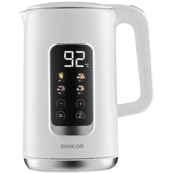 Электрочайник Sencor 1.7л, Strix, LED дисплей, двойные стенки, смысл. управление, белый