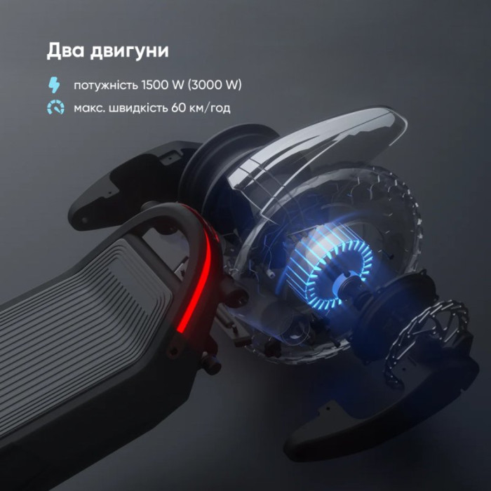 Електросамокат OKAI ES800 Panther Off-Road Black 12", 1500(3000)W, Dual Motor, 19.2Ah, 50km, 60km\h, 35%, NFC, App, 43kg