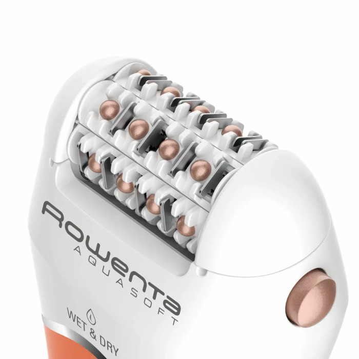 Видаляйте волосся дбайливо, швидко і без побічних ефектів з новим епілятором Rowenta Aquasoft. Завдяки запатентованій технології проти роздратування Anti-Irritation і спеціальному м'якому покриттю насадки епілятор ефективно видаляє волоски, не дратуючи шкіру. Корпус епілятора на 100% водонепроникний, тому пристрій можна використовувати як на сухій шкірі, так і під час прийняття душу або ванни, адже вода чинить додаткову заспокійливу дію на шкіру під час епіляції.