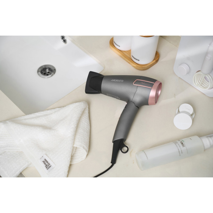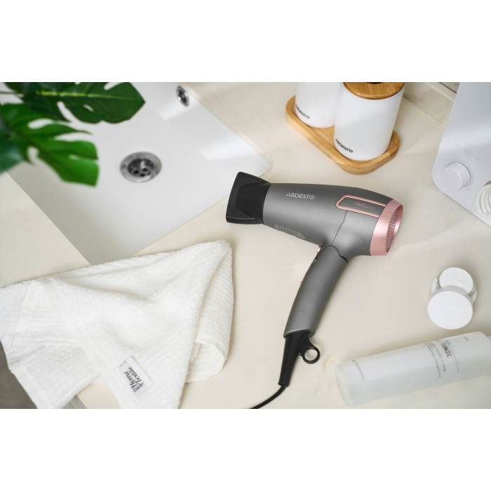 Фен ARDESTO Pink Touch, 2000Вт, 2 швидкості, 2 темп.режими, складана ручка, сірий+рожевий