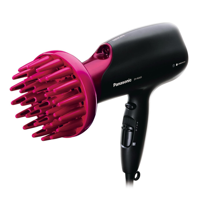 Фен EH-NA65 - це нове рішення для краси волосся. Це пристрій із високою потужністю, що становить 2 000 Вт. Завдяки потужному повітряному потоку просушити волосся можна швидко. Фен оснащено двома окремими регуляторами, що відповідають за температуру та потужність повітряного потоку для створення найрізно-манітніших зачісок.