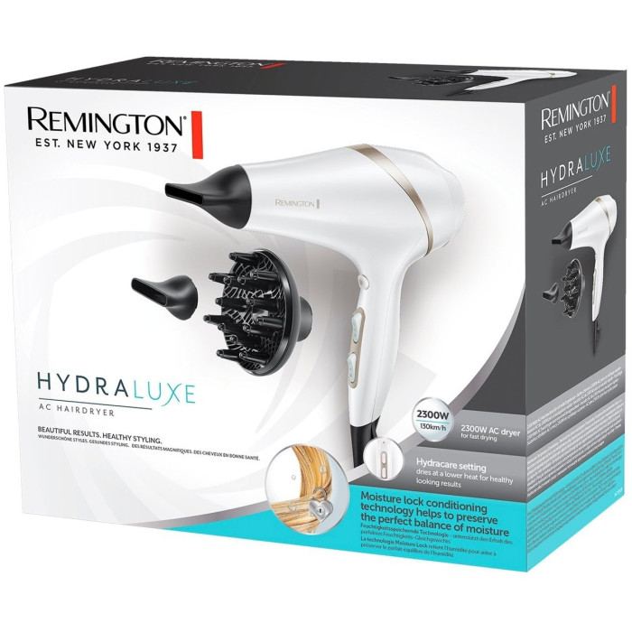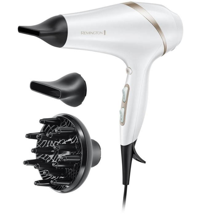 Фен Remington HydraLuxe, 2300Вт, 3 режими, дифузор, іоніз-я, хол. обдув, білий