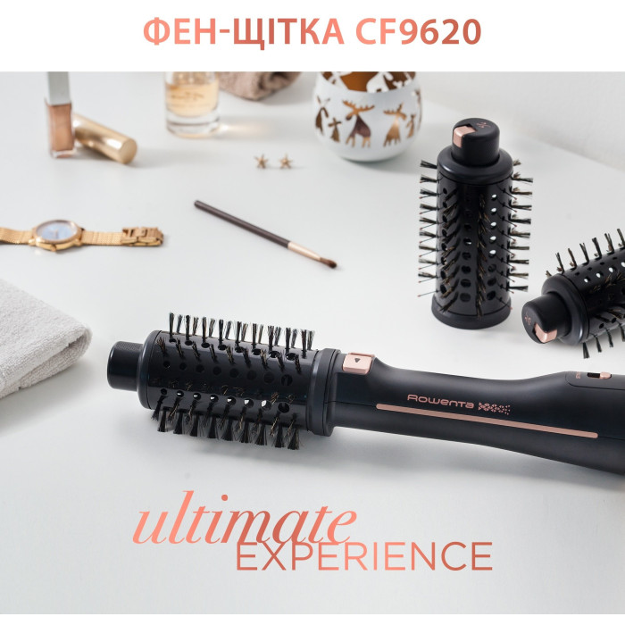 Хотіли б ви кожен день відчувати те незабутнє відчуття, коли ви виходите з салону краси з приголомшливою укладкою? Представляємо вам Rowenta Ultimate Experience - нову фен-щітку 2 в 1 з автоматичним обертанням, виконану в унікальному ергономічному корпусі для професійного догляду за волоссям у вас вдома. Завдяки трьом унікальним накадкам, які підходять для будь-якого типу волосся, і інтуїтивним налаштуванням управління ви зможете створити укладку, як в салоні краси.